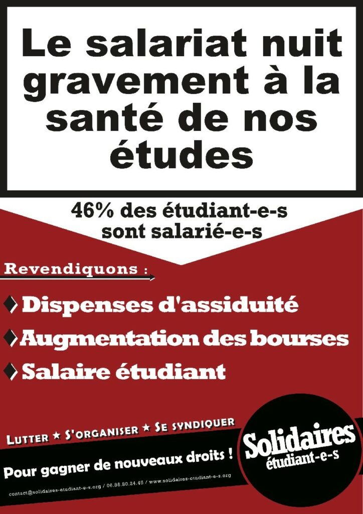 CONTRE LE SALARIAT ETUDIANT ET POUR L’AUGMENTATION DES BOURSES !
